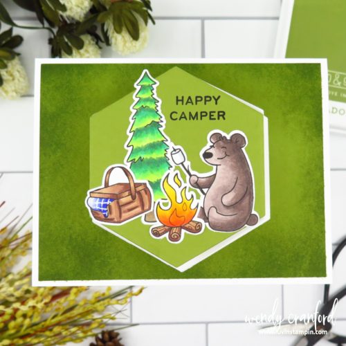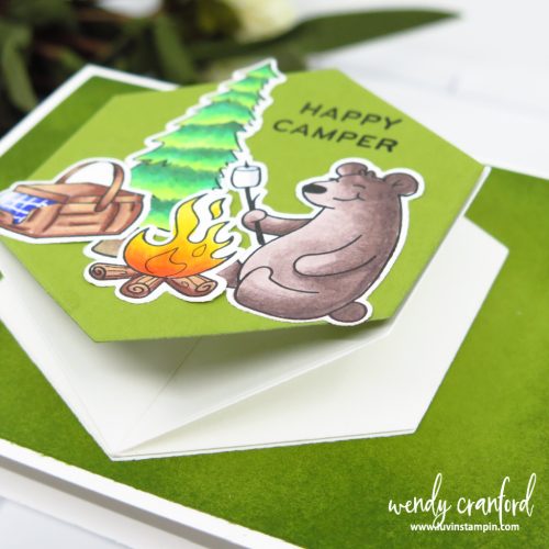 For the first card, I used Pajama Crafters Stamps Happy Camper stamp set. I am currently obsessed with this stamp set and used it HERE as well. The Hexagon dies are from Hero Arts and they make a perfect shape option for this type of card.