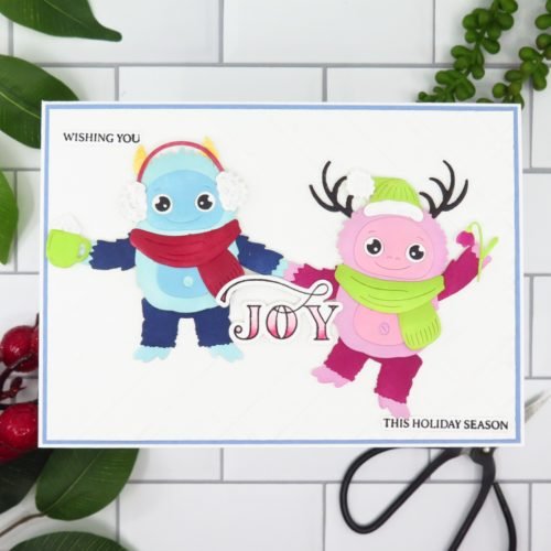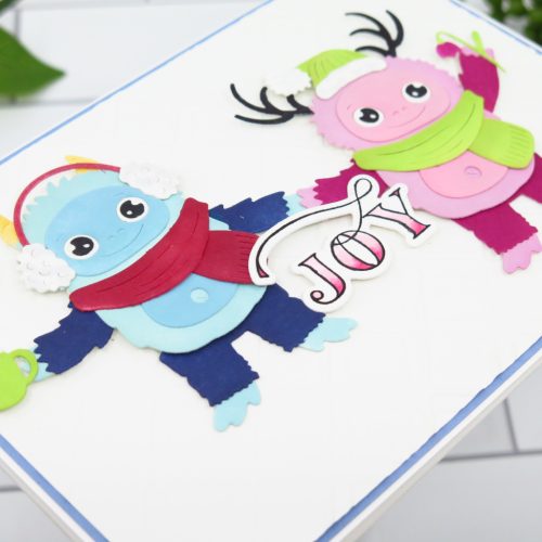 Today I am sharing a brand new release product from Spellbinders. I am so excited to be on their list to share new products when they are released. Today’s card features Rocky the Dancin Yeti. Spellbinders have an entire line of products that create fun interactive characters.